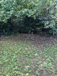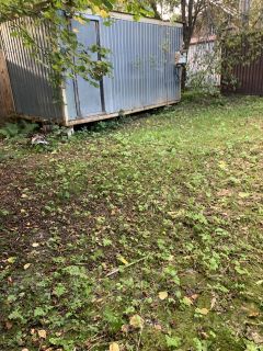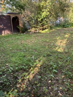 Имеется хозблок для хранения инвентаря, установлен забор с кирпичными столбами. Территорию украшают взрослые ели и орешник — создают ощущение уюта и единения с природой.