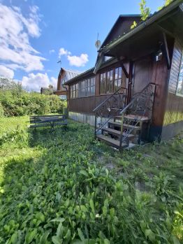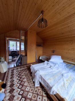 Дом бревенчатый, двухэтажный. На первом этаже - просторная кухня-гостиная и две сапальные комнаты. На втором этаже - одна спальная комната и кладовая. Отопления печное. Вода проведена в дом.