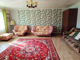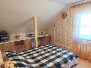 Один дом из бруса, утеплен, на фундаментных блоках. Отопление комбинированное — дрова/электричество — разведено по дому. Санузел в доме. Вода заведена в дом из колодца. Пластиковые окна, на полу ламинат, остекленный балкон, терраса. На первом этаже холл, зал 36 кв.м., кухня и санузел. На втором этаже холл, и две спальни.