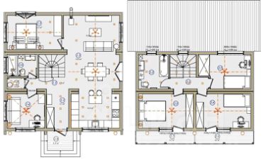 Дом с шикарной и функциональной планировкой: 6 комнат, 4 спальни, кабинет, просторная гостиная-столовая, шикарная кухня, прихожая, 2 санузла, ванная комната, балкон, печь-камин, сантехника и санфаянс, светильники, теплые полы, рекуперация, вентиляция, водоснабжение и канализация.