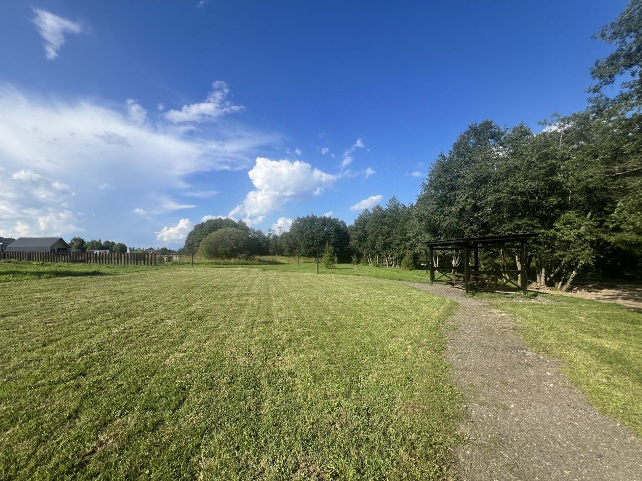 На участке есть небольшие деревья, первая линия от реки через прогулочную зону, один сосед, шикарный вид на лес! Прямой выход к пляжу, роднику и беседке.