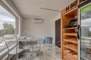Магистральный газ, канализация - септик, водопровод - собственная скважина. Электричество 80 кВт. В настоящее время здание используется не по назначению, размещается офис. Планируется изменение назначения здания в нежилое, по необходимости, может быть отменено. Установлено и функционирует офисное инженерное оборудование - приточно-вытяжная вентиляция и кондиционирование. Территория благоустроенная, озеленение и брусчатка. Автоматические ворота. Участок выгорожен забором по всему периметру. На третьем этаже выход на благоустроенную террасу.