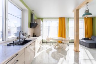 - Техническое помещение, отдельная кухня и большая обеденная зона, объединенная с гостиной.