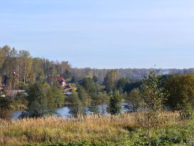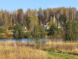 Участок на берегу реки Никажель в новом современной коттеджном посёлке имеющим свой песчаный пляж. Окружен лесным массивом.