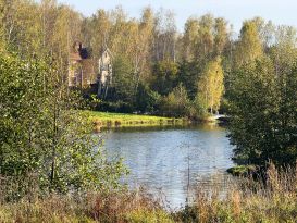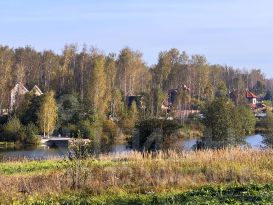 Участок на берегу реки Никажель в новом современной коттеджном посёлке имеющим свой песчаный пляж. Окружен лесным массивом.