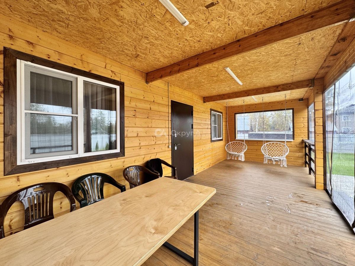 На участке расположен современный каркасный дом площадью 90 м², полностью готовый для круглогодичного проживания.