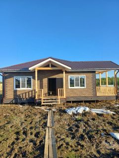 Современный одноэтажный просторный дом обшит клинкерной плиткой, внутрення отделка чистовая, стены и пол готовы к основному покрытию. Три изолированные комнаты, кухня-гостинная, совмещенный санузел, бойлерная.