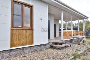 Дом на железобетонном монолитном фундаменте, построен по каркасной технологии, утепление 150/200. Отделка фасада - металлические утепленные сендвич панели. Мягкая кровля. Энергосберегающие окна.