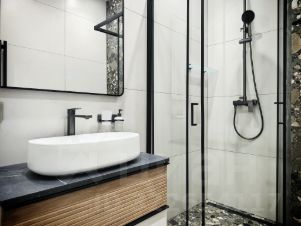 Также на первом этаже есть вторая кухня - это решение позволяет разделить зоны для повседневной жизни и приема гостей, сохраняя чистоту и порядок в основной кухне-гостиной.