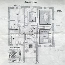 4 спальни + 1 мастер спальня, 4 санузла, котельная с отдельным входом, каминный зал, столовая, кухня, кабинет, спортзал, сауна, летняя веранда, детские игровые, гардеробные, постирочные и кладовые помещения.