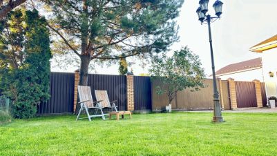 На участке уличное освещение, ландшафтный дизайн, дренажная система, полив. Парковка и прогулочные дорожки из натурального камня. Автоматические ворота. Зона барбекю, детская площадка. Площадка для бассейна. Есть домик хранения дров и садового инвентаря, вольер для собаки.