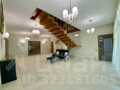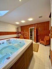 Коттедж состоит из 3х этажей, площадь 696,3кв.м. Полностью готов для проживания, во всех помещениях выполнены качественные современные ремонт и меблировка. Практически вся мебель и техника остается новым хозяевам. Планировка состоит из: 7 спален, 3 гостиных, 7 санузлов, гараж на 2 машино-места, бойлерная, кладовая, 3 террасы, балкон, кухня, прачечная, 2 гардеробные, джакузи, парильная комната, большое пространство 3го этажа, которое можно использовать как спортзал и/или для иных целей. Везде установлен теплый пол. Для дополнительной безопасности установлена сигнализация с прямым выходом на охранный пункт.