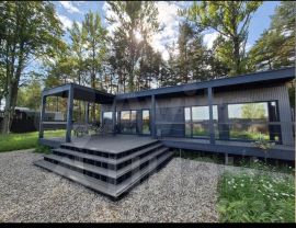 Внутри дома вас ждет уютная сауна, которая станет отличным местом для расслабления после насыщенного дня. На террасе установлена купель, позволяющая насладиться водными процедурами под открытым небом.