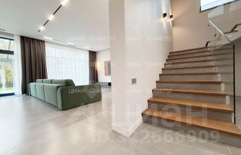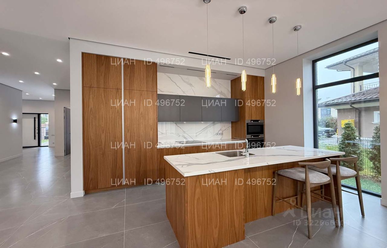 Современный построенный дом с мебелью, панорамными окнами. Навес на 2 машины.