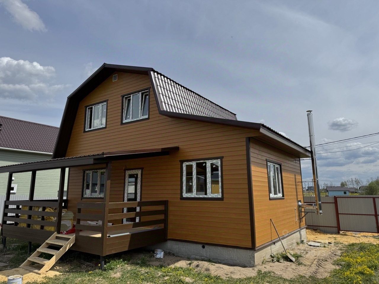 Современный, прочный и тёплый деревянный каркасный дом со всеми коммуникациями для постоянного комфортного проживания без вложений. На участке с забором, распашными воротами, калиткой, парковкой и выложенной плиткой дорожкой до дома.