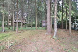 Участок правильной, прямоугольной формы, с лесными деревьями. Парковка для автомобилей.