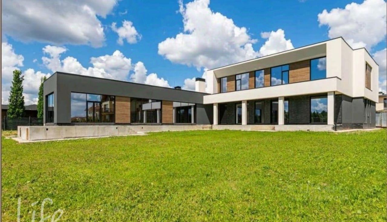 Элитный коттеджный поселок "Миллениум парк". Новый, современный дом в стиле хай-тек, с панорамным остеклением и плоской кровлей. Под внутреннюю отделку.