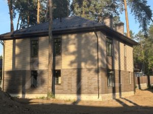 Фундамент плита; цоколь-кирпич; перекрытия плиты; стены дома газосиликатный блок- 400 и обложен кирпичом с армирование кладки блока. Крыша-металлочерепица. Водостоки премиум класса.