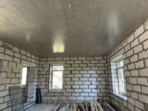 Коттедж построен по индивидуальному проекту, с очень эргономичной планировкой из качественных материалов, без внутренней отделки. В доме на первом этаже размещены: гостиная -столовая с выходом на террасу, кухня, спальня , котельная, гардеробная, ванна; на втором этаже: 4 комнаты, ванна, санузел, монолитная лестница. Высота потолков в доме 3,5 м.