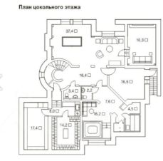 Цокольный этаж 164,5 кв.м.: зона отдыха - парная с душевой, зона спа и бассейн с гидромассажем, бильярдная и домашний кинозал; хозяйственные помещения - постирочная, кладовая, гардеробная, санузел, котельная и комната водоочистки.