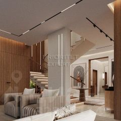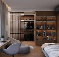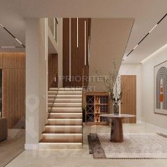 1 ЭТАЖ: гараж на 2 авто с хоз/помещением и котельной, прихожая, проходная гардеробная, холл, кухня с кладовой-столовая-гостиная с выходом на патио и террасу, гостевая спальня с санузлом, комната для персонала (или вторая спальня), санузел.