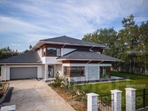 Дом расположен в известном строго охраняемом коттеджном поселке "Крекшино" в тихом зеленом районе на окраине леса, в шаговой доступности от всей необходимой инфраструктуры и в 25 минутах от центра города - данной локации нет альтернативы!!! Дом с большой верандой и гаражом на 2 авто, сдается с черновой отделкой. Мы готовы довести до "под ключ" согласно проекту или по Вашим пожеланиям. Фасад: декоративная штукатурка, планкен массива лиственницы.