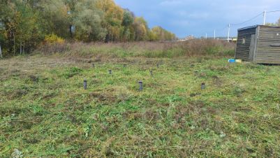 2 участка общей площадью 13 соток, участок ровный, есть дренажная канава, бытовка,сделан заезд на участок, закручены сваи под дом 7х9.на территории дорога асфаль, есть электричество, за забором деревня Петровское (с газом) участок правильной формы, сухой. по границам установлены столбы.вопросы по телефону