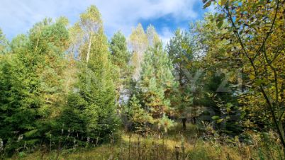 Участок с лесными деревьями. Электричество 15 кВт. Установлен забор 150 метров по периметру с соседями.
