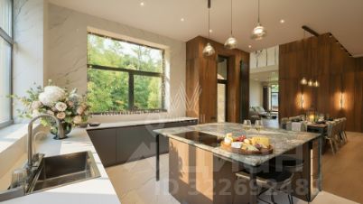 Планировка включает просторную гостиную-кухню-столовую с дровяным камином, TV-зоной и баром, кабинет и 6 спален, 2 из которых можно использовать, как блок для персонала. На территории предусмотрено место для строительства гостевого дома или банного комплекса площадью 500 м², а также во дворе можно обустроить уютную зону для барбекю. На участке выполнен ландшафтный дизайн, засеян газон, растут лесные деревья, вдоль вымощенных дорожек оборудовано уличное освещение.