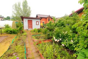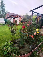 Выполнен дренаж всего участка, растут многолетние деревья, малина с клубникой, оформленные грядки, лужайка, место для бассейна и авто. Двухэтажный дом из бруса 15 см. По документам - жилое строение с возможностью прописки.