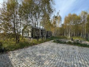 Участок облагорожен: здесь есть свой березовый лес, зона для барбекю с мангалом, парковка для двух автомобилей и детская площадка. Дорожки и парковка выложены гранитной брусчаткой, что придает территории особый шарм. Так же есть возможность докупить еще два участка, прилегающие к дому.