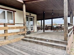 Для веранды и балкона использовалась лиственница, покрытая дорогостоящим маслом для террас OSMO. Площадь веранды и балкона 230 м2.