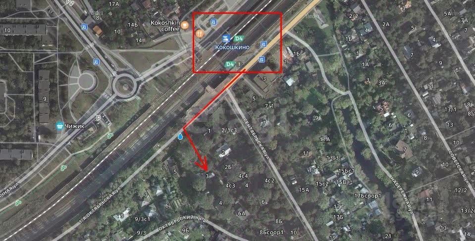 Земельный участок площадью 8,68 сотки правильной прямоугольной формы расположен в юго-западном направлении, всего в 17 км от МКАД, в 5 минутах пешей ходьбы от станции МЦД-4 "Кокошкино", что обеспечивает прямую и быструю связь с центром Москвы.