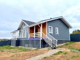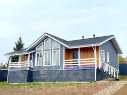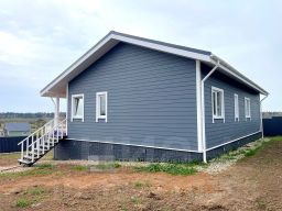 Дом одноэтажный, 134,2 кв.м, каркасный, утепление стен, пола и потолка 200 мм, фундамент свайно-винтовой, кровля - гибкая черепица, окна - стеклопакеты.