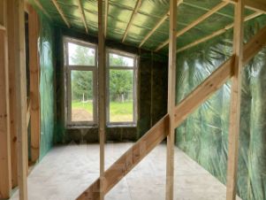 Дом каркасный зимний, стоит на винтовых сваях, стены утеплены минеральной ватой 150 мм. Кровля - 200 мм.