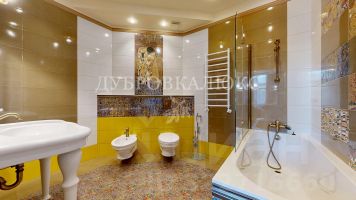 В классическом исполнении отделки, предлагается меблированный 3х ур. таунхаус 250кв.м. с зоной отдыха при гостиной и своим земельным участком площадью 6соток, 2сот в собственности(плюс 4сот самозахват). Используемые материалы отделки: натуральный камень, керамогранит, натуральные породы древесины, лепнина из гипса, дровяной камин. Меблирован итальянской мебелью из массива на заказ. В таунхаусе установлены кондиционеры, мансардные окна на пультах управления, выведен датчик температурного режима на котельную, полы с водяным подогревом под керамогранитом, система охранной сигнализации и видеонаблюдения. Участок с беседкой для барбекю, газон, деревья, выход на зону отдыха и пруды.