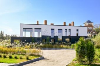 Современный двухэтажный дом 940 кв.м под отделку со свободной планировкой на солнечном участке 28 соток в клубном элитном поселке "Усадьба Бергов" в 23 км от МКАД на Киевском шоссе. Скоростной доступ по платной М-1 трассе Северный обход Одинцова и проспекту Багратиона от Москва-Сити.