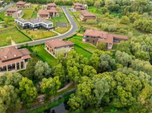 КП "Усадьба Бергов" построен в едином архитектурном стиле по мотивам Ф.Л. Райта. При проектировании и строительстве предусмотрен высокий уровень комфорта и качества жизни: большие участки по 20-50 соток, продуманная посадка домов, широкие освещенные улицы с мягкими обзорными примыканиями и тихими тупиками.