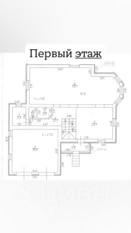 Общая площадь 370 кв м, свободная планировка, два этажа плюс паркинг , балкон на втором этаже