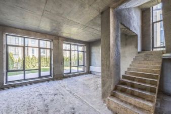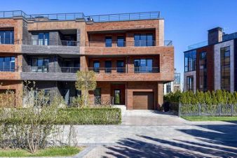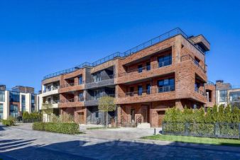 Три этажа торцевого таунхауса занимают 350 м2, и это не считая эксплуатируемой кровли и личного придомового участка площадью 4,3 сотки, отделённого от дороги и соседних владений зелёной живой изгородью! На верхних уровнях устроены опоясывающие балконы, нижний включает встроенный гараж и открытую террасу со стороны двора с портальным выходом на неё