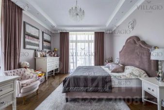 На третьем этаже спальня с ванной комнатой, вторая гостиная, кабинет, игровая.