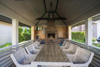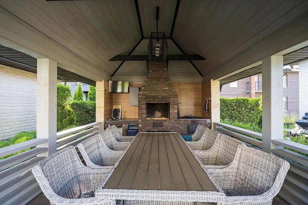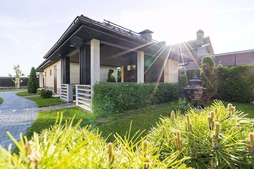 Летний и зимний комфорт: крытая терраса, зона барбекю с каменной печью, банный комплекс с хамамом, бассейном и спортзалом.