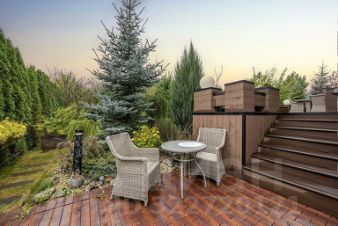 Дом стоит на ухоженном участке площадью 10,04 сотки с продуманным ландшафтным дизайном.