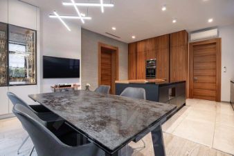 В доме есть все для вашего комфорта. На четырех этажах размещены три ванные комнаты, четыре спальни и четыре гардеробные. Также в доме есть кабинет, просторная гостиная с камином, кинотеатр, спортивный зал, баня, хамам и терраса где вы сможете расслабиться после долгого дня.