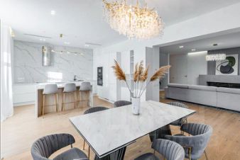 Дом построен по современным технологиям с высококачественными отделочными материалами. Интерьер оформлен стильной мебелью, панорамные окна обеспечивают светлое пространство. Установлены системы вентиляции и отопления, а также сантехника от брендов "VAGNODESIGN LONDON" и "VADO".