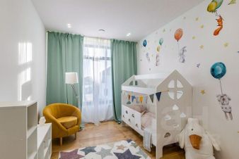 Второй этаж: мастер-спальня с санузлом и гардеробной, детская спальня и два санузла.