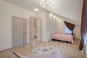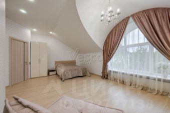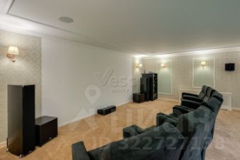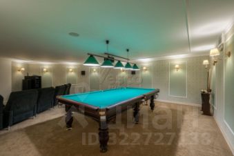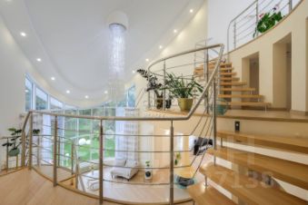 В доме: 3 спальни, холл с парадной винтовой лестницей и панорамными окнами высотой 9,1 м (тройной свет), кухня-столовая с выходом на террасу, гостиная с круговым дровяным камином в центре зала, кинотеатр с бильярдной, спа зона с сауной и хаммамом, спортивный зал на третьем этаже с панорамным видом на участок, постирочная, гараж на 2 машиноместа.