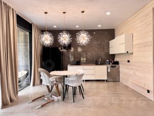 - Кухня-гостиная 36кв м с панорамой на реку и закат.