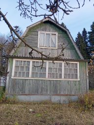 Дача с пропиской в 5 минутах езды на электричке ( 1 остановка ) от Сергиева Посада , ж.д. платформа 76 км . и в 65 км от МКАДа . Дом 8 на 5.20 , деревянный , минимально утеплен ( до морозов комфортно ) Прямой , ровный , запаха нет , полы в идеальном состоянии , есть глубокий погреб ( по лестнице спускаться ) Фундамент - большие блоки ФБС . На 1 этаже прихожая-тераса , кухня и 2 комнаты . На 2 этаже комната и холл . Лестнтца на 2 этаж винтовая , очень удобная . На участке есть 2й домик , там тоже комната с кухней и печкой + помещения под туалет и кладовку . Так же есть действующий туалет , душ и тоже кладовка . Участок ровный , квадратный , есть яблоня , облепиха , смородины , тёрн , облепиха.. Рассрочки платежа и мат капитала нет .Звоните пожалуйста с 10.00 до 20.00 Просмотр в любое время . Агентство .