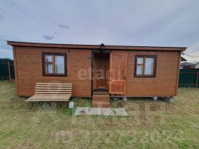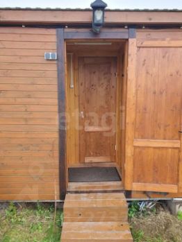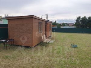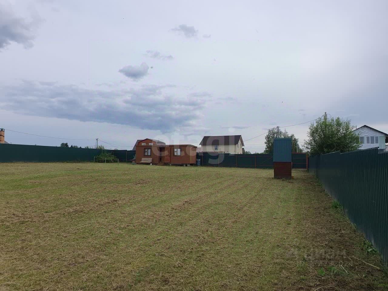 Участок выкашен, на участке постройка под туалет (биотуалет), бытовка (7м х 2м).